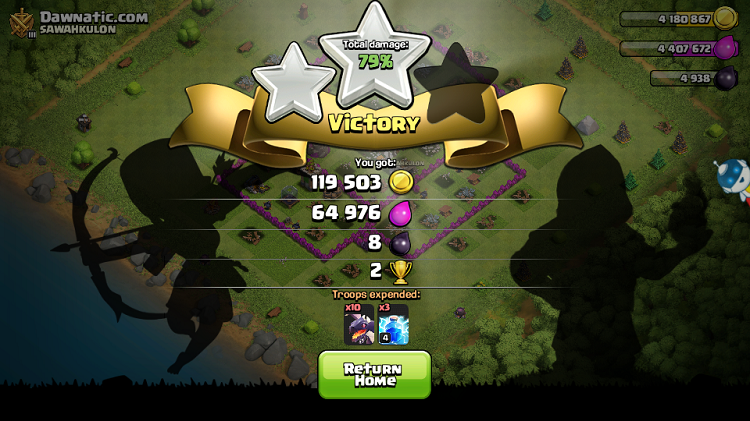 Setiap kali ane melakukan penyerangan pasti mendapatkan setidaknya 300000 Gold dan 300000 elixir, memang tidak begitu WAH tapi menurut ane jumlah loot sebanyak ini cukup lumayan dan dapat di kumpulkan dengan cepat buat melakukan upgrade bangunan di TH 9 yang harganya selangit. Semua markas musuh yang ane serang merupakan Dead Base atau base yang sudah lama tidak di mainkan tetapi Gold Mine dan Elixir Collectornya penuh-penuh, ane sendiri merasa sedikit heran kenapa TH 9 di Crystal Liga mudah sekali mendapatkan Dead Base, padahal saat TH 8 sulit sekali bagi ane mendapatkan Dead Base di Liga Crystal.